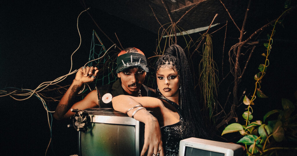 A estética visual do duo é definida como punk afrofuturista reciclado, ou “cybermístico do mangue”, mesclando sucata eletrônica, tintas corporais, roupas reconstruídas e signos ritualísticos. A capa, concebida por Jota a partir de uma foto de Ignus, materializa essa fusão entre orgânico e tecnológico. Cada faixa do álbum recebe ainda lyric, visualizer ou videoclipe, compondo um universo audiovisual interligado e potente.