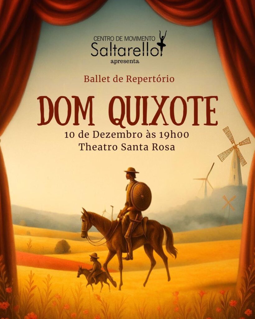 O Theatro Santa Rosa se prepara para receber um dos títulos mais celebrados do ballet clássico mundial. No dia 10 de dezembro, o Centro de Movimento Saltarello apresenta sua montagem de Don Quixote, obra que atravessa séculos encantando plateias com sua energia contagiante, musicalidade marcante e narrativa repleta de carisma.