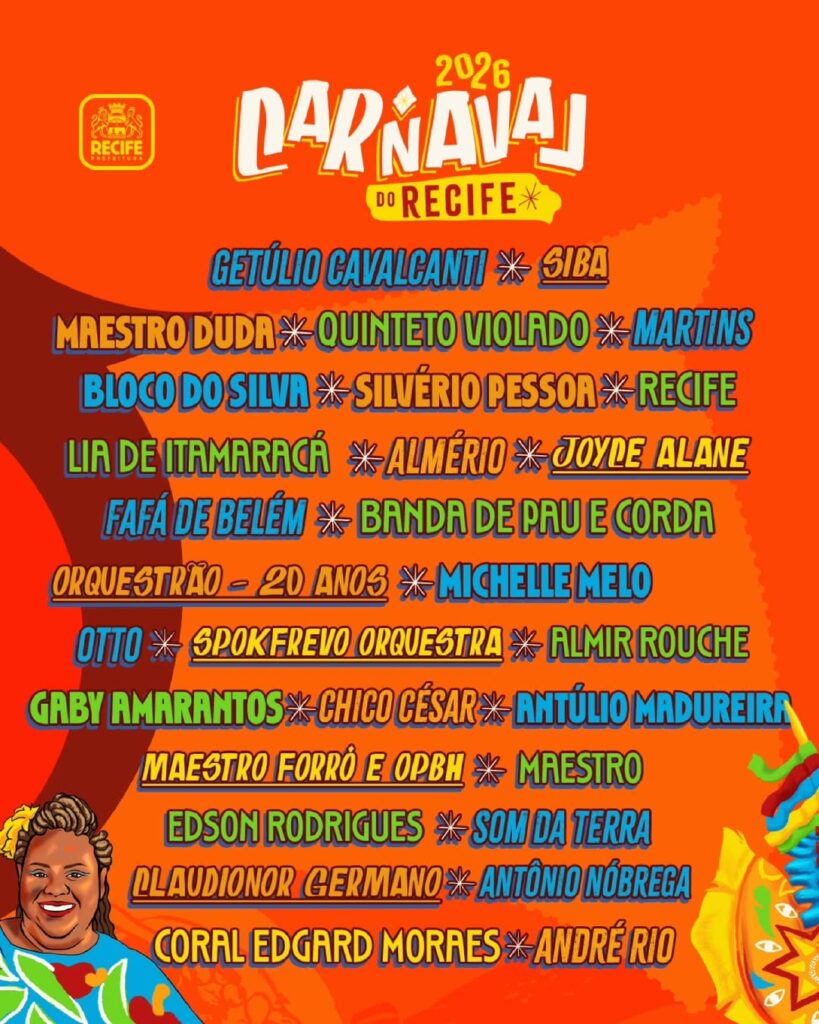 O Carnaval 2026 do Recife já começa a ganhar forma e promete uma edição marcada pelo encontro entre passado, presente e futuro. A Prefeitura do Recife divulgou nesta quinta-feira (4) os primeiros nomes confirmados para a programação oficial da folia, reforçando a identidade plural que consagrou o carnaval da cidade como um dos mais importantes do país.