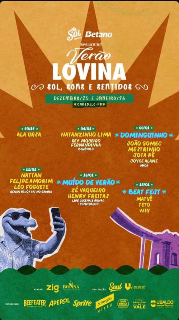 Com uma curadoria que transita entre ritmos, gerações e linguagens musicais, o Verão Lovina constrói uma programação plural, capaz de dialogar tanto com a música popular contemporânea quanto com as raízes sonoras que marcam a identidade nordestina. No dia 4 de janeiro, o festival recebe Natanzinho Lima, Rey Vaqueiro, Fernandinha e Benévolo, nomes que traduzem a força do piseiro e do forró atual no imaginário popular. Já no dia 9 de janeiro, o palco se volta para a sofisticação e a musicalidade do projeto Dominguinho, vencedor do Grammy Latino na categoria Melhor Álbum de Música de Raízes em Língua Portuguesa, reunindo João Gomes, Mestrinho e Jota.Pê.